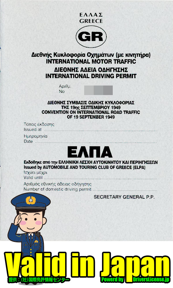 そのため、ギリシャ共和国がジュネーブ条約(1949年)に基づく様式で発行した国際免許証は日本で有効です。