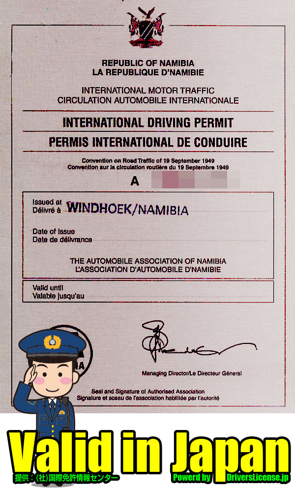 そのため、ナミビア共和国がジュネーブ条約(1949年)に基づく様式で発行した国際免許証は日本で有効です。
