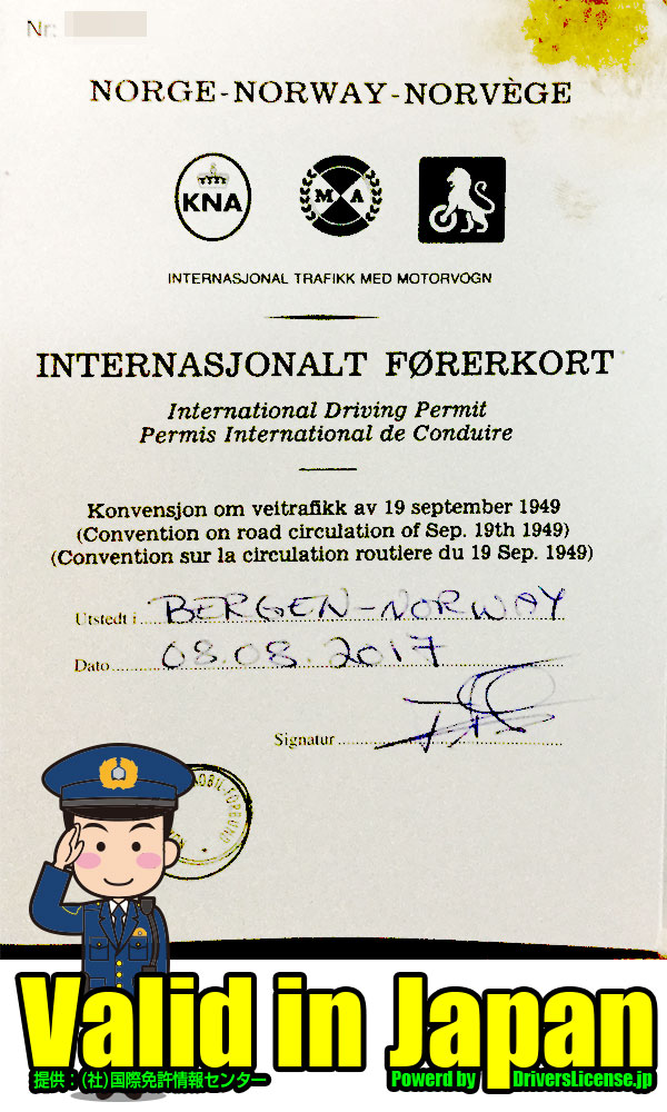 そのため、ノルウェー王国がジュネーブ条約(1949年)に基づく様式で発行した国際免許証は日本で有効です。